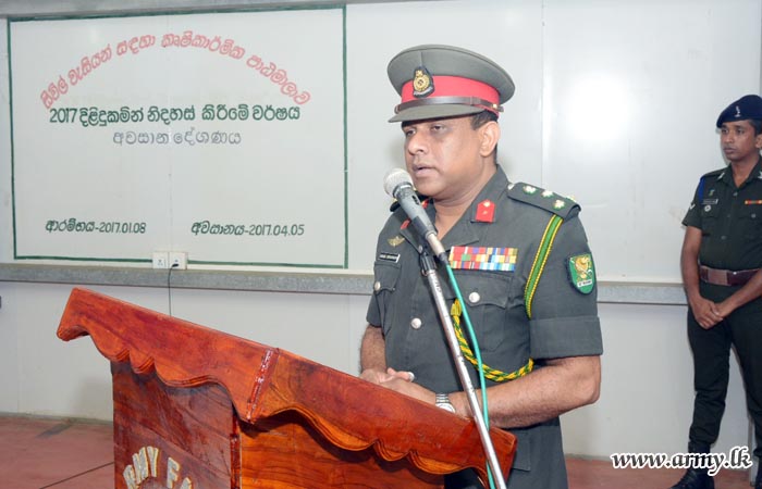 The certificate awarding ceremony and the closing ceremony of the course was attended by the Brigade Commander 213 Brigade, Brigadier S.M.S.P.B Samarakoon as the Chief Guest.