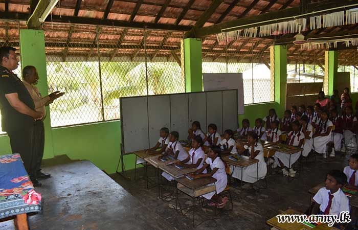 Under the initiative of Major General S. Kasthurimudali RSP ndc psc from the 68 Infantry Division and the guidance of Brigadier H.V.A Somaweera RWP RSP USP, Thevipuram Tamil Mixed School embarked on a significant endeavor, hosting the 'Sinhala Language Teaching Programme' in response to the requests of the Principal and teachers.