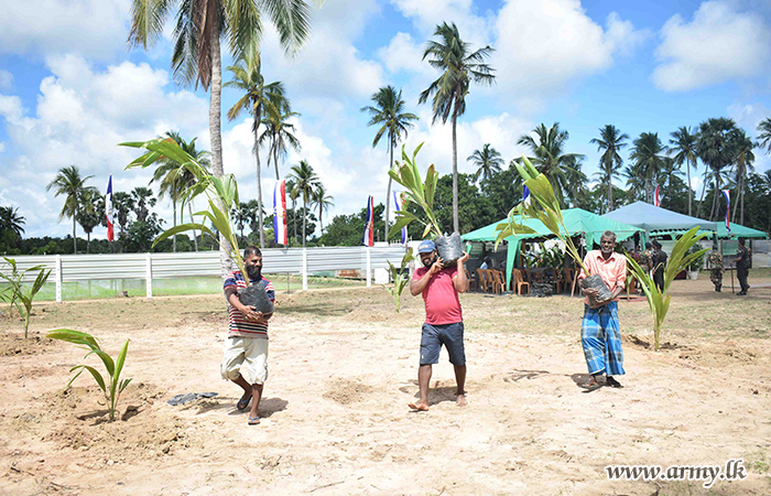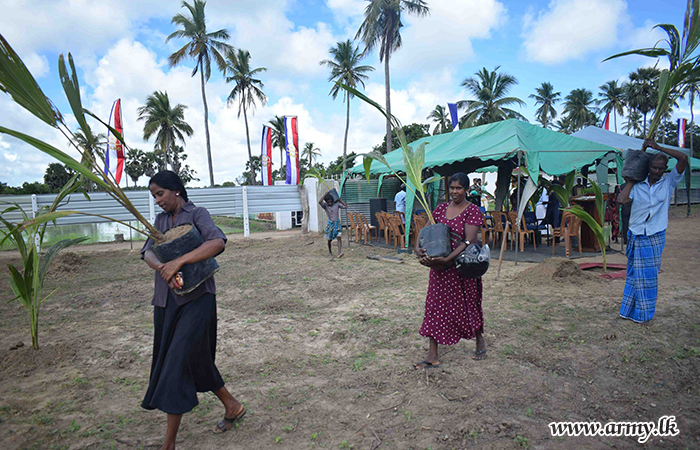6 Gemunu Watch (GW) troops distributed those coconut saplings among the families in Theravil while 9 Sri Lanka National Guard troops distributed the saplings in Sugandipuram.