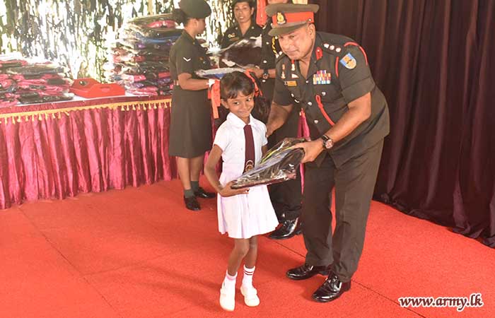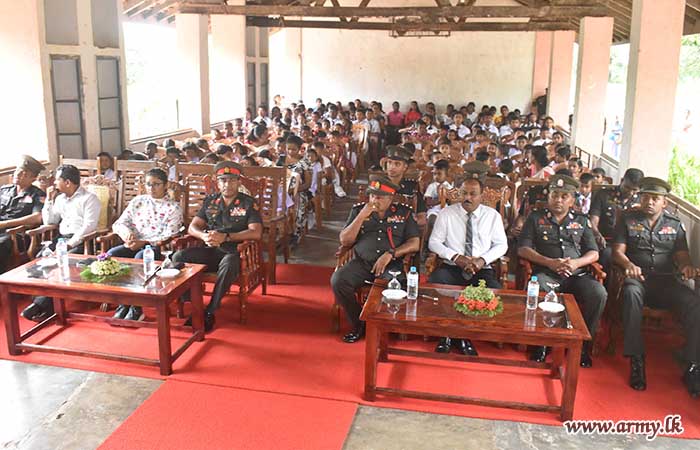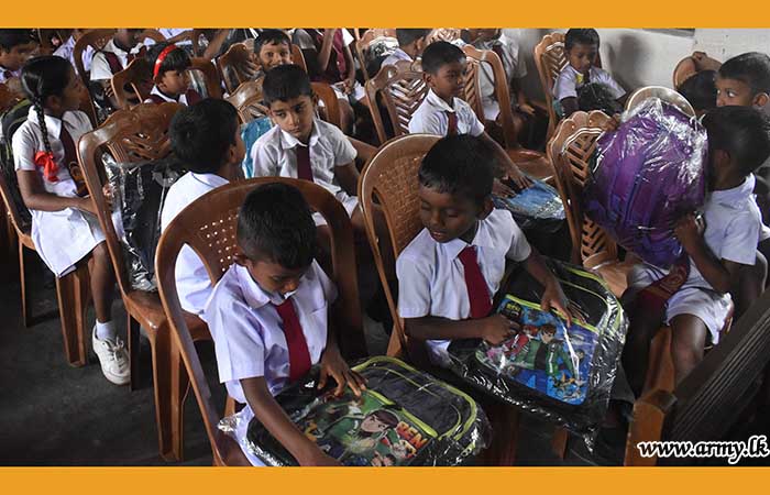 Under the guidance of Brigadier L.G.J.N Ariyathilaka RWP RSP, the Commandant of the Army Training School (ATS), 127 children from economically deprived families who attend Alawakumbura Maha Vidyalaya and Damminna Primary Schools were presented with school bags and books on 26 December 2023 at Damminna Primary School. The primary objective of this initiative is to enhance their educational experience. Additionally, ten children of civil servants at ATS were also provided with school accessories during this event.