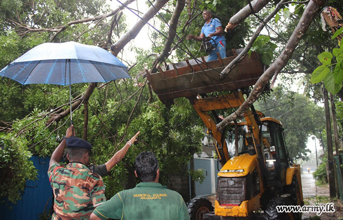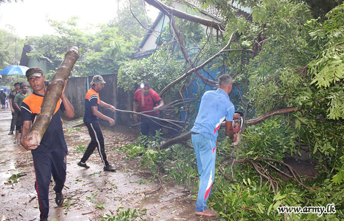 In collaboration with the Akkaraipattu Municipal Council and the Electricity Board, the troops swiftly removed the fallen tree, facilitating the restoration of both electricity supply and transportation along the affected road.