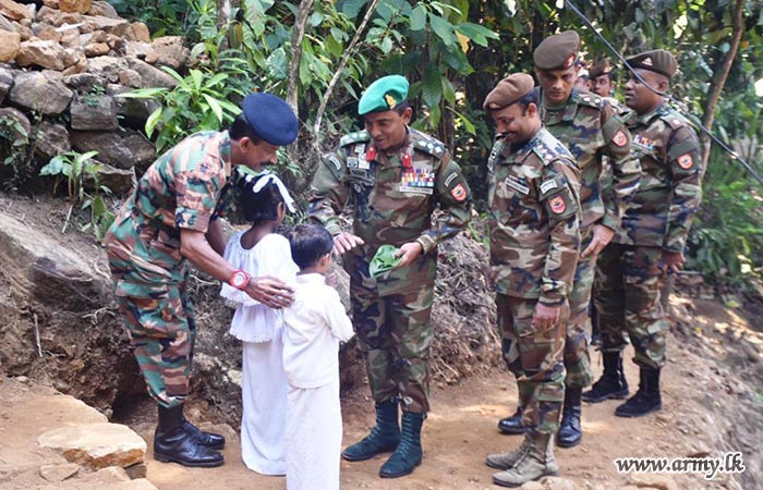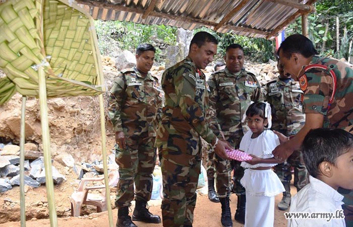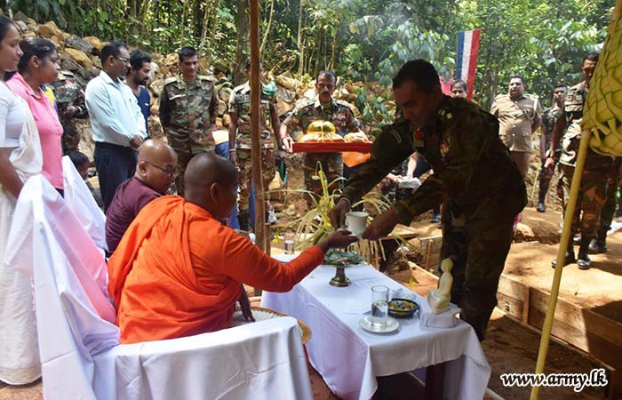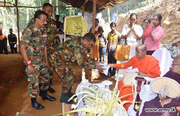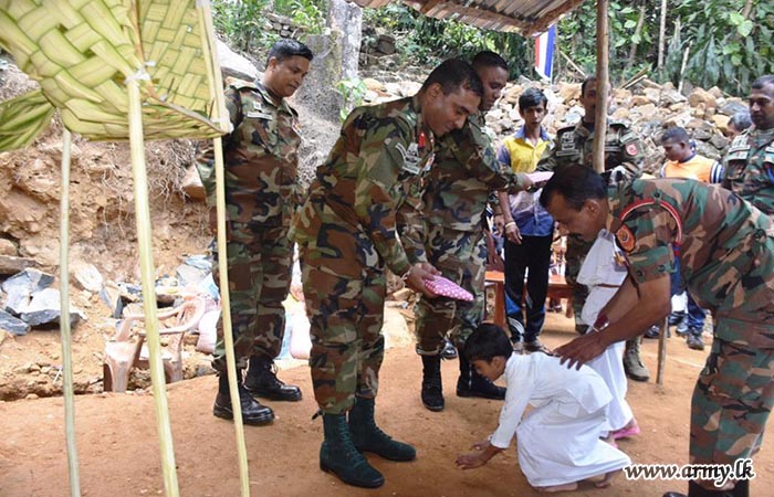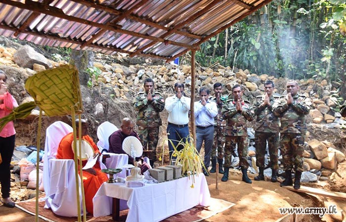 Accordingly, the foundation stone for the proposed house for the beneficiary, Mrs. K.G. Mala Mangalika who lives at the address of No;3/31 A, Kumburuhena, Lakshapana was laid by the army troops, in a simple ceremony.