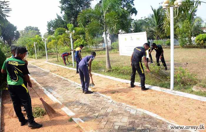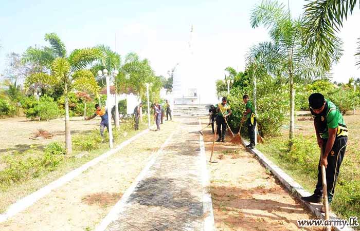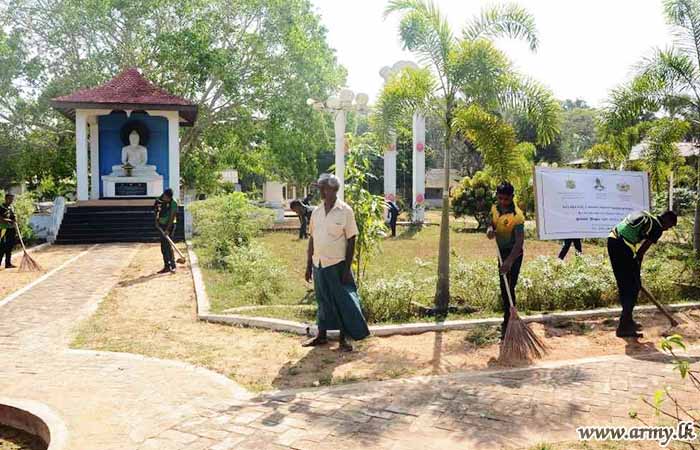 Under the supervision of Major B.A.J. Premathilaka, the Commanding Officer of 5 (V) SLSR, the initiative aimed to improve cleanliness and enhance the overall atmosphere of the temple premises for devotees.