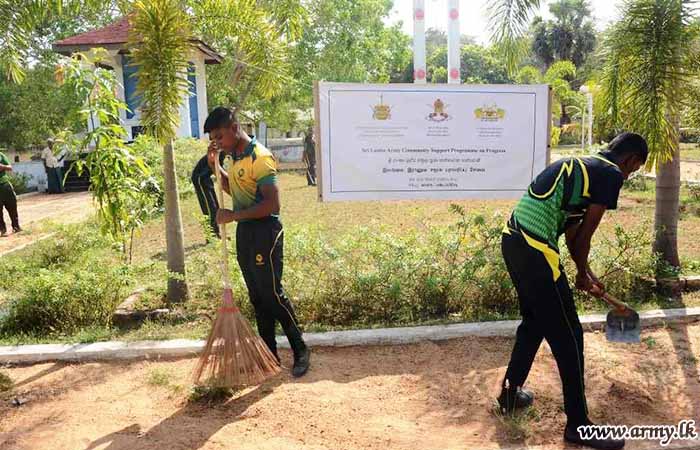 Troops of the 5 (Volunteer) Sri Lanka Sinha Regiment (SLSR) undertook a community-oriented project at the ‘Sri Sugatha’ Buddhist temple premises in Mankulam on 24 March 2024.