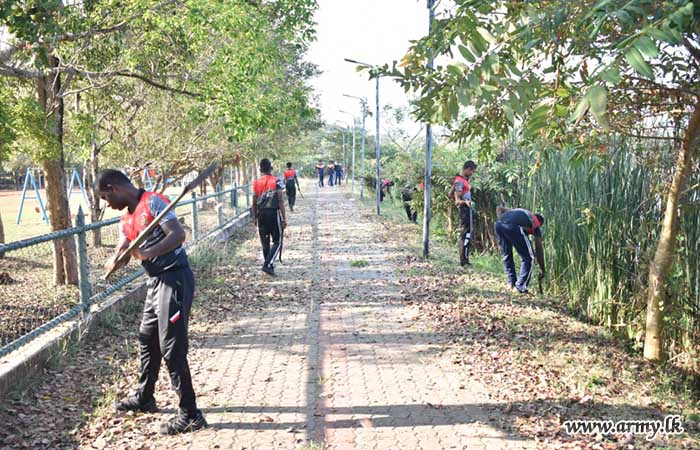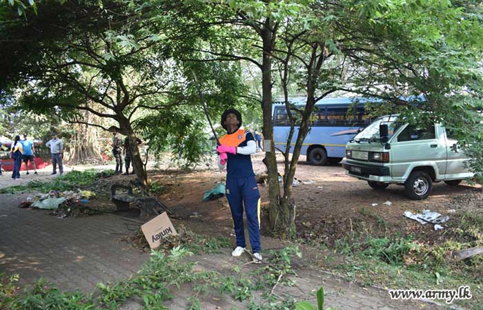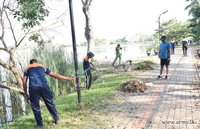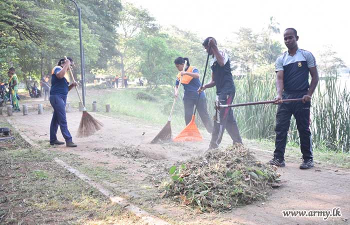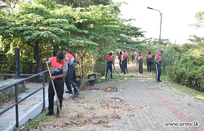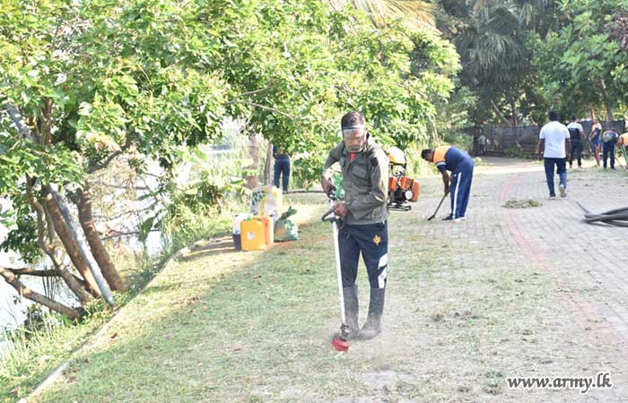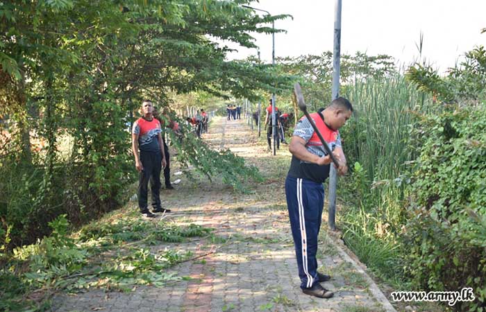 Troops of the 21 Infantry Division conducted a Shramadana campaign on 26 March 2024, focusing on cleaning the jogging path around Kubichchikulam Tank in Anuradhapura.