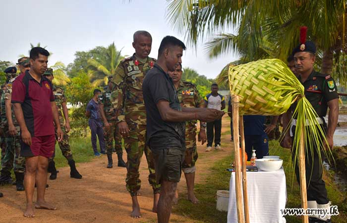 The Paddy Asweddumization Ceremony in Yala season started amidst traditional and religious rituals on 09 April 2024. The General Officer Commanding of 56 Infantry Division, Major General S Kasturimudali RSP ndc psc graced the ceremony as the chief guest. Six acres of paddy fields were aswaddumized with early maturing seedling variety.