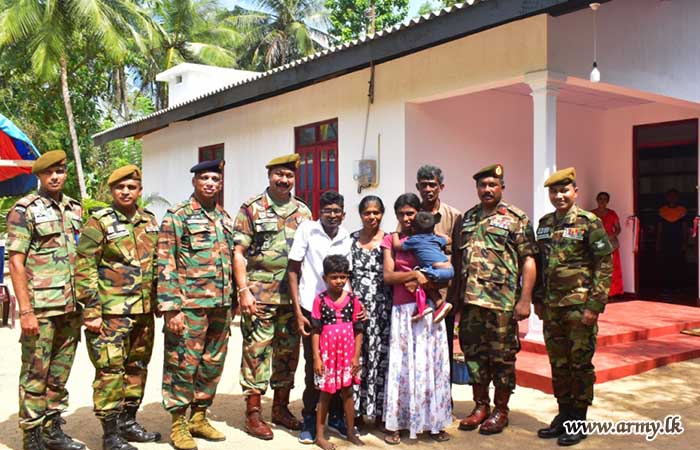 Major R.P De Zoysa, the Commanding Officer of 16th Battalion of the Sri Lanka National Guard (SLNG) took the initiative to complete this house using technical skills and manpower assistance of troops of 16 SLNG for the construction work.