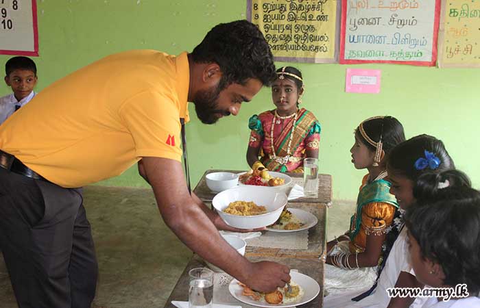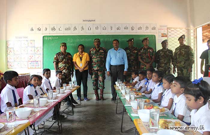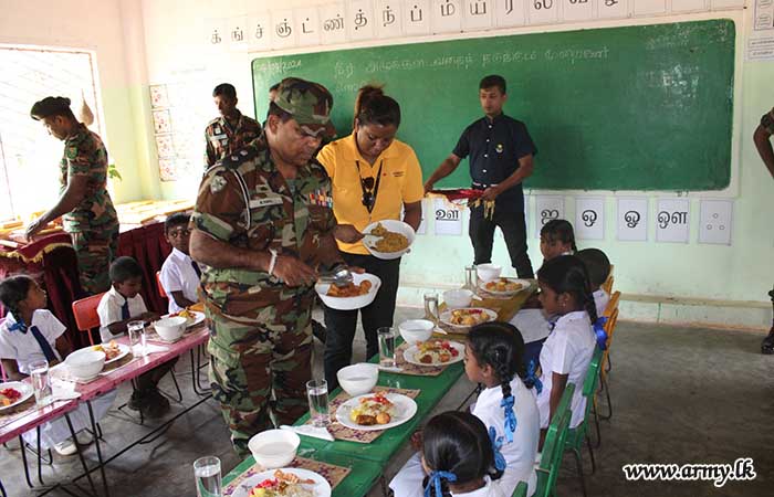 The 561 Infantry Brigade conducted a multifaceted community service initiative on 09 April 2024. Under the guidance of Major General S. Kasturimudali RSP ndc psc, the General Officer Commanding of the 56 Infantry Division, and the supervision of the Commander of the 561 Infantry Brigade, the event included a cleaning campaign, repair of water lines, a lunch program, and a book donation to 30 students of Periyakulam Government Tamil Mix School in Kanakarayankulam.