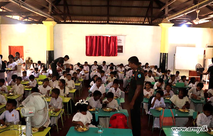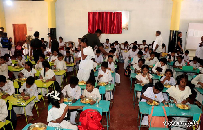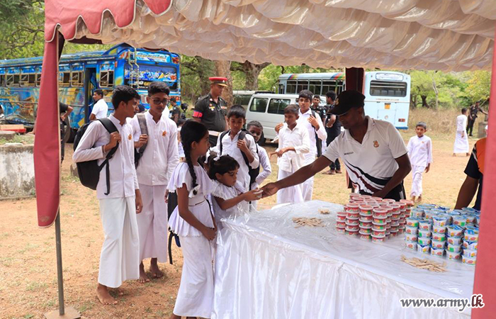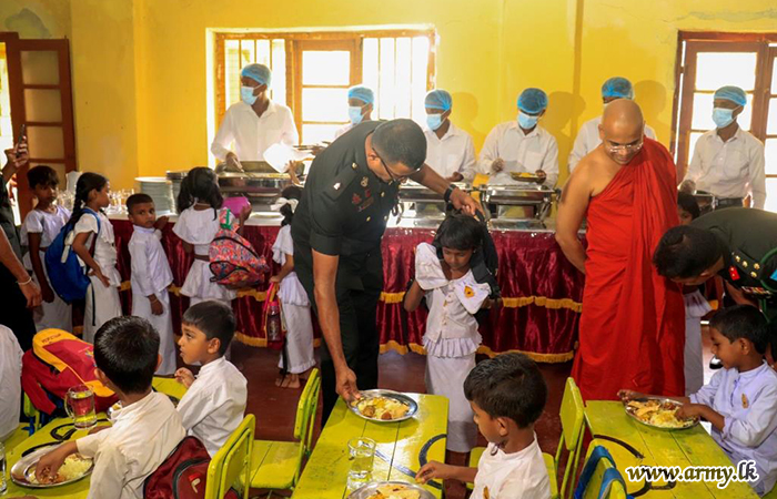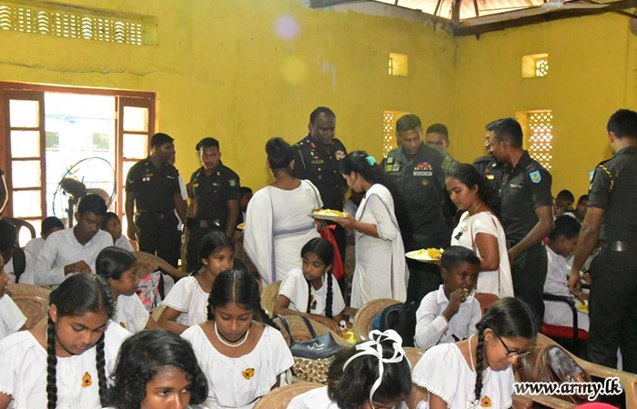 Under the guidance of Major General P.A.M Peiris RSP USP psc, the General Officer Commanding, 22 Infantry Division, the troops of 9 Vijayabahu Infantry Regiment (9 VIR) initiated a program to provide lunch for 300 students at Seruwila Mangala Raja Maha Vihara Sri Sumedankara Dhamma School on 12 May 2024.
