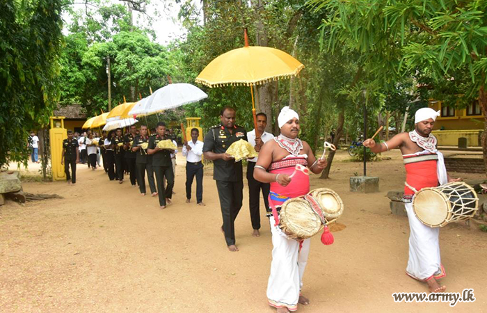 The financial contribution made by Mr. & Mrs. Isuru Prabath Kumara, residents of Homagama. The chief priest of Seruwila Raja MahaViharaya Venerable Aludeniye Subhodi thero, Senior Officers, Officers and Other Ranks participated in the event.