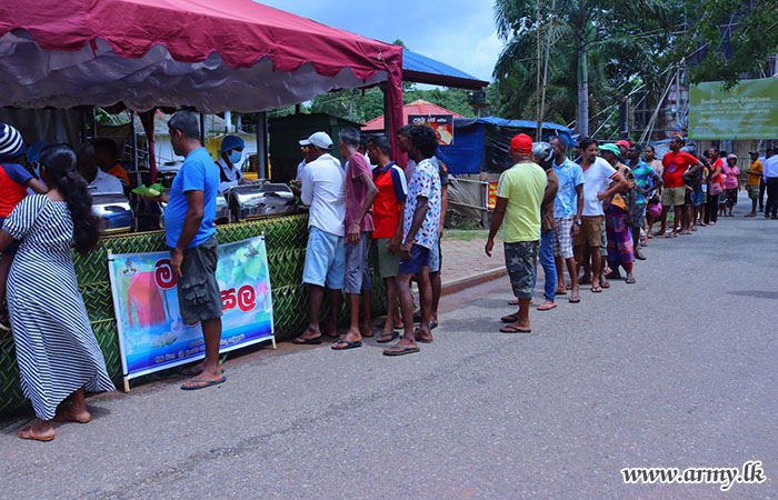 In conjunction with the Vesak festival, the 141 Infantry Brigade organized a Dhamma Sermon and a cooked jackfruit dansala at the Brigade premises on 22 May 2024. This event was held under the guidance of the Commander, 141 Infantry Brigade, Colonel R.R de S Dharmawickrema RSP, with the support of the Officers and Other Ranks in the Brigade. More than 1,000 devotees attended the Vesak Dansala.