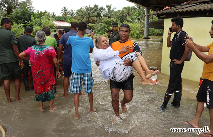 Following flash floods in Gampaha District on 03 June 2024, troops of 6 Field Regiment of Sri Lanka Artillery and the 8 Sri Lanka Light Infantry conducted a rescue and relief operation under the instructions of Major General S.W.M Fernando WWV RWP RSP VSV USP ndc psc, Commander, Security Forces – West and supervision of Commander of 141 Infantry Brigade.
