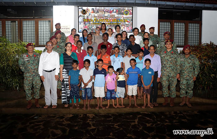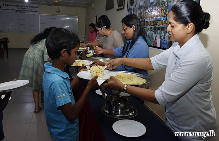 To coincide with the Children’s Day, the Chairperson of the Commando Regiment Seva Vanitha Branch (CR-SVB) Mrs. Nimali Ranatunga. together with SVB members visited the Sri Wimalawansha Children’s Development Centre in 'Ranmuthugala Viharaya', Kadawatha on Sunday (1 October 2023) and provided the children with essentials and a dinner treat.