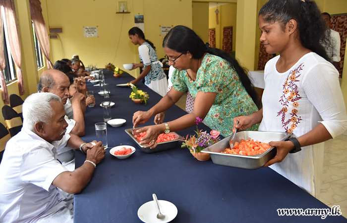 Members of Military Intelligence Corps - Seva Vanitha Branch (MIC - SVB) launched its monthly alms-giving program Warusavithana Elders’ Home at Ambalangoda on 25 May 2024 under the guidance of Mrs. Prashadini Ranasinghe, the Chairperson of MIC - SVB.