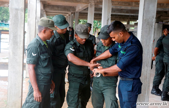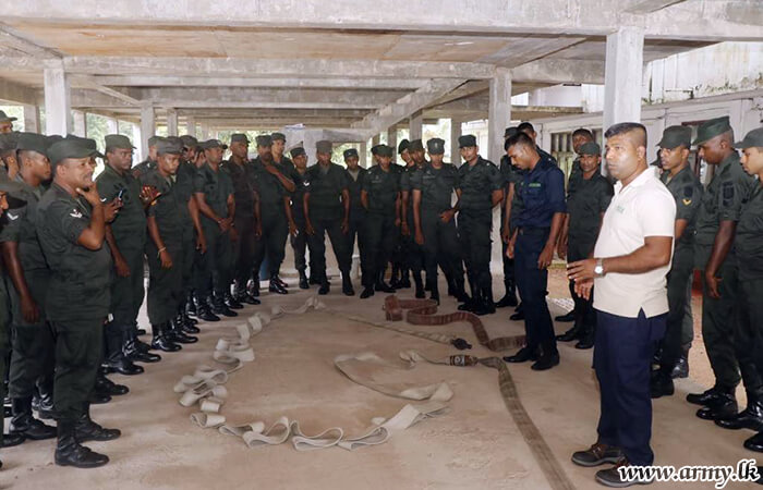 Accordingly, inclusive of 10 Officers and 46 other ranks from all Security Forces Headquarters and Army Training Schools of the Sri Lanka Army were educated in both theory and practical aspects of the basic firefighting techniques by Mr. Kamal Wilson, Chief Fire Officer of the Fire Services Department, Mr Ranjan Kumara, and Mr. Rasika Abeywickrama who are experts at Fire and Rescue Training Academy in Colombo.