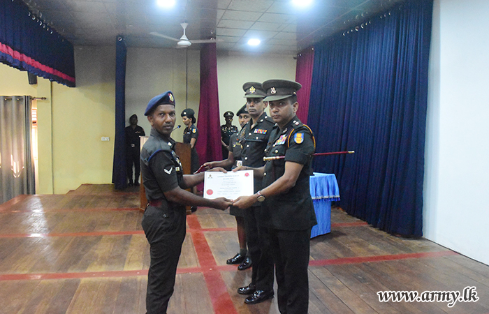 181 Other Ranks participated in the course representing all the Regiments in the Army and Private A.M.D.M Alahakoon of 19 Sri Lanka National Guard achieved the first place in order of merits.