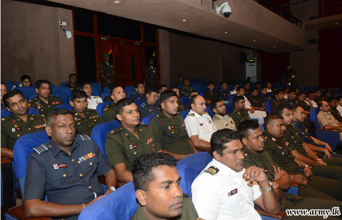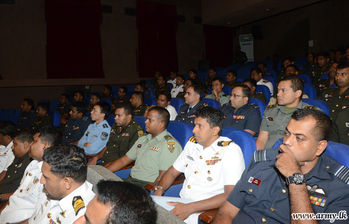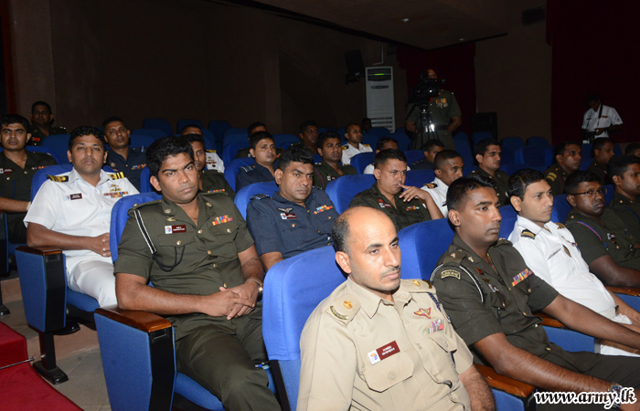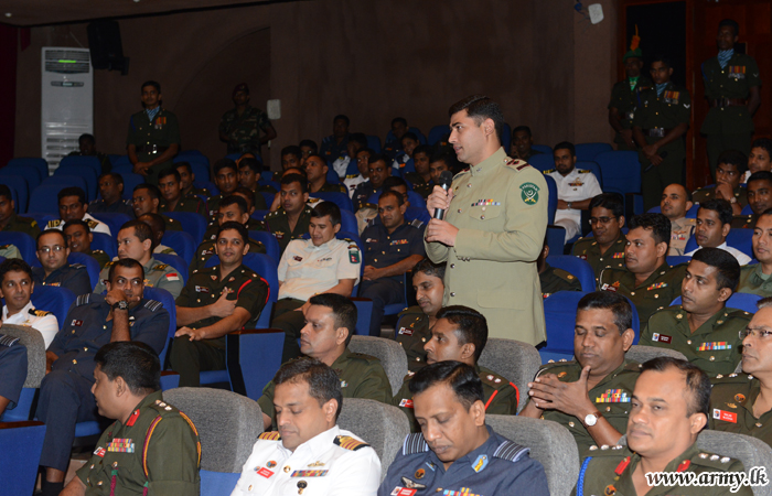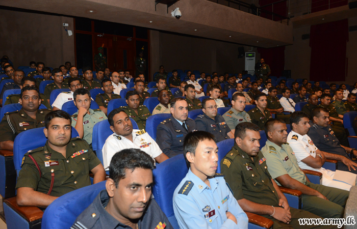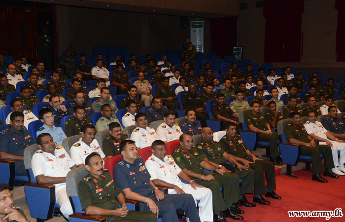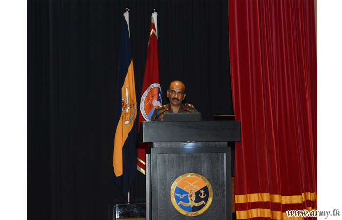 Major General Udaya Perera, Commandant, DSCSC welcoming the Commander provided a brief introduction at the occasion to the student officers of tri-services and foreign student officers of the Course No 9 before the Commander made some observations regarding the curriculum at the DSCSC and upgrading of the DSCSC course contents to suit emerging international threat perceptions.