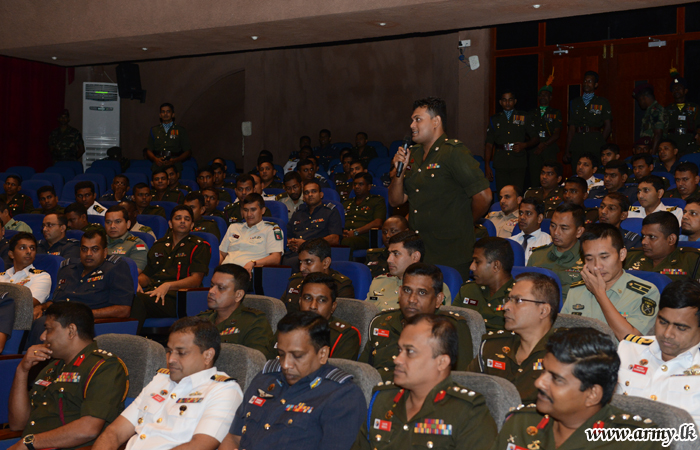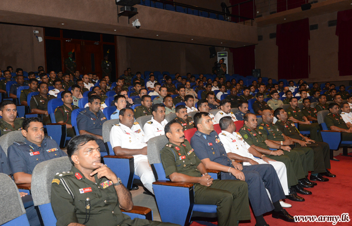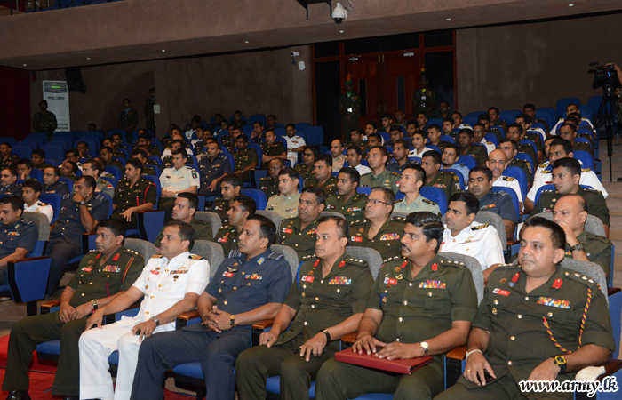 Lieutenant General Crishanthe De Silva, Commander of the Army, delivering a formal address to the three digit number student officers at the (Defence Services Command and Staff College) DSCSC on Friday (11) at Sapugaskanda on ‘Future of the Land Forces’ underlined the importance of acquiring professional knowledge to meet with emerging new challenges in the world order and resolution of contemporary conflicts.