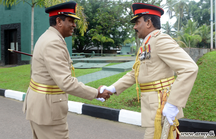 At the entrance to the DSCSC premises, a formal Guard Turn Out salute greeted the Commander of the Army before he was formally welcomed by Major General Udaya Perera, Commandant, DSCSC.