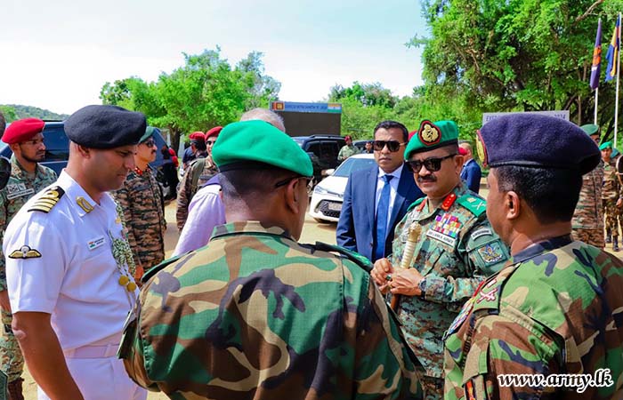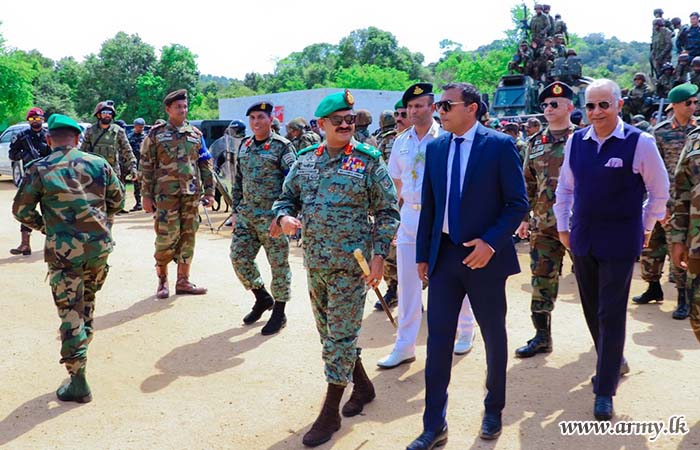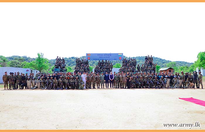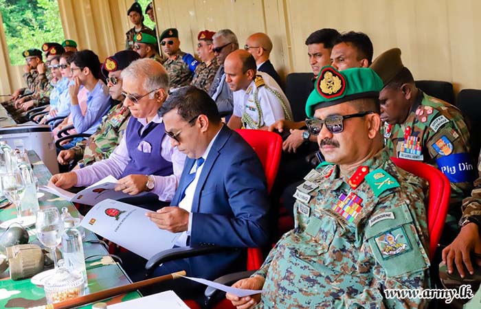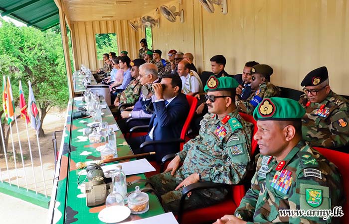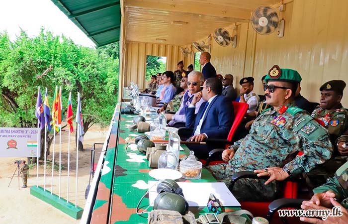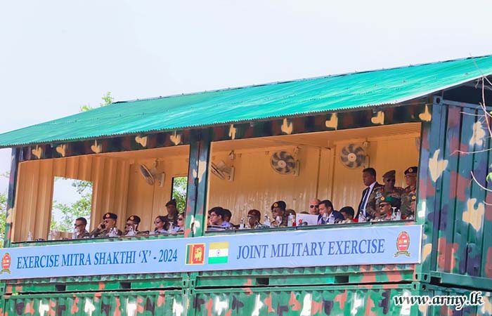 The State Minister of Defence, Hon. Premitha Bandara Tennakoon, Indian High Commissioner, HE Santosh Jha, Major General U.K.D.D.P Udugama RWP RSP USP ndc psc - Director of the Exercise ‘Mitra Shakti X’, Senior Officers, Officers and Other Ranks from both Armies witnessed the final demonstration.