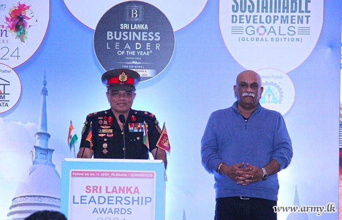 Major General A.H.L.G. Amarapala RWP RSP ndc psc, the Commander, Security Forces (West) and Colonel Commandant of Corps of Sri Lanka Engineers, was honoured with the most prestigious ‘Lifetime Achievement Award 2024' at the Sri Lanka Best Employer Brand Awards & Sri Lanka Leadership Awards 2024 held at Taj Samudra, Colombo on 05 September 2024.