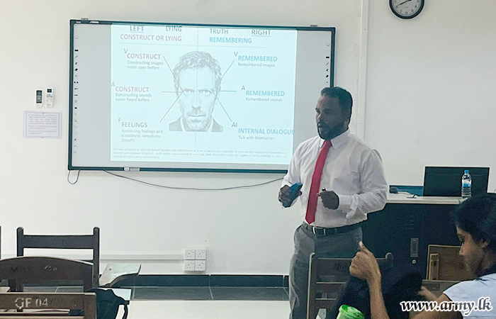 At the invitation of the Faculty of Management and Commerce at the University of Sri Jayewardenepura, an informative lecture on Kinesics in Management was conducted at the university's lecture hall on 11 September 2024. The session was conducted by Major M.H.M.S Bandara Lsc from the Directorate of Media.