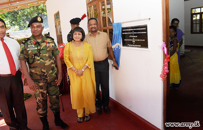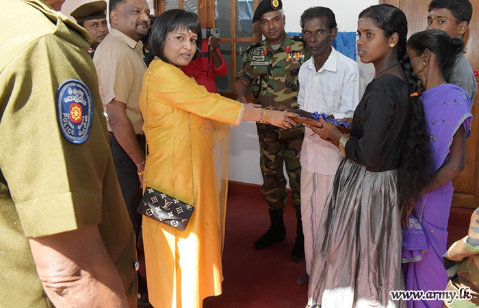 During the house-warming ceremony, the keys were symbolically handed over to the family by Major General W.P Kariyawasam, General Officer Commanding of the 23 Infantry Division. Senior Officers, Officers, Other Ranks and residents in the area were among participants in the warming ceremony.