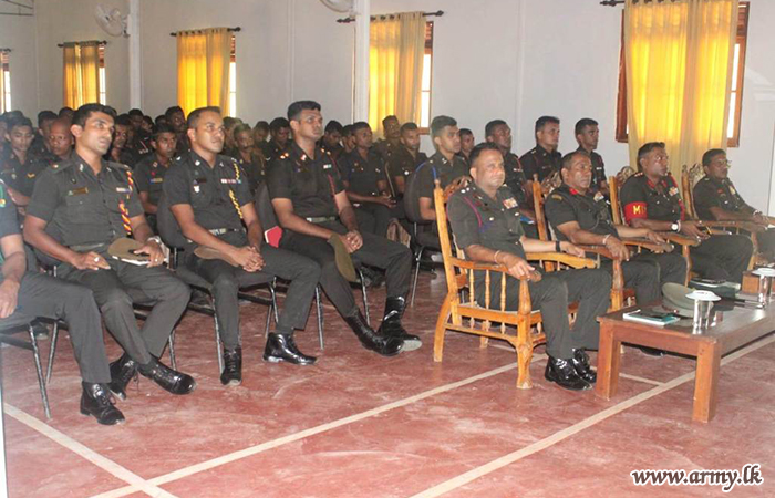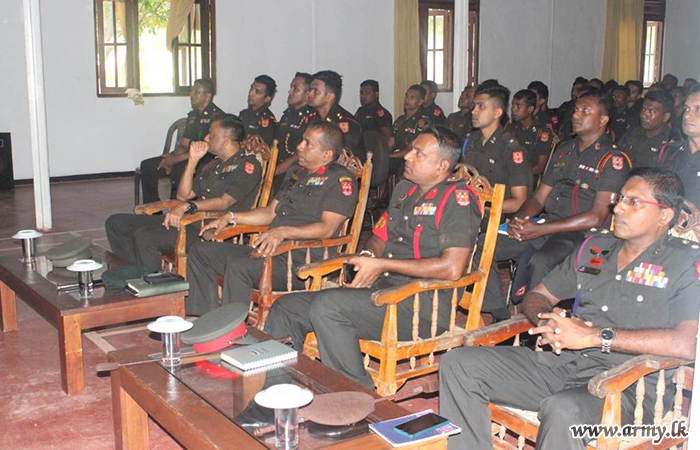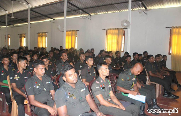Colonel R.M.N. Rathnayake KSP, Colonel Coordinating of the 52 Infantry Division delivered the lecture. The session focused on critical topics, including the various types of drugs, how soldiers become addicted, the harmful effects of drug use, strategies for overcoming addiction, and the impact of drug abuse on families.