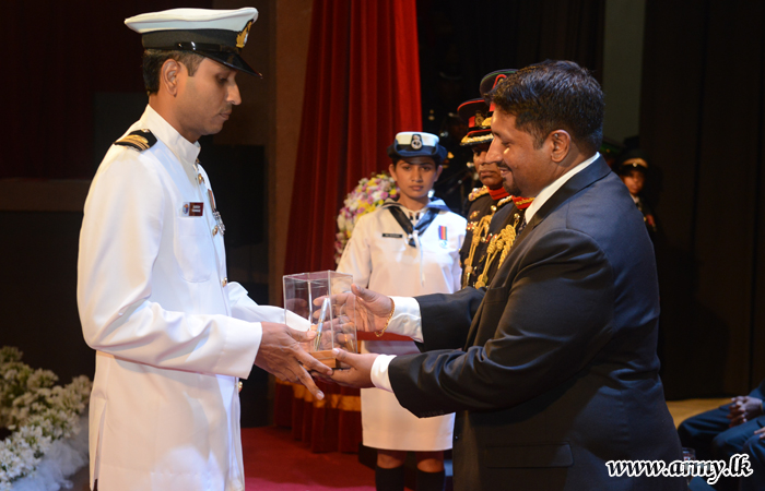 The Golden Owl Award for the most exceptional performance was awarded to Major L. L. I. S. Lokuliyanage (Army Wing) Commander (H) R. M. L. Rathnathilake, (Navy Wing) and Wing Commander W. U. S. De Silva (Air Wing) during the programme. The Golden Pen Award, generally presented for the Best Research Paper was received by Lieutenant Commander (ASW) S. K. Vidanage.