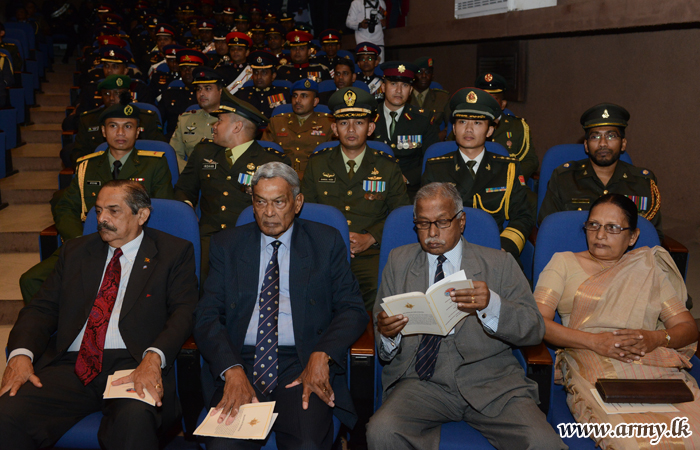 Hon Ruwan Wijewardene, State Minister of Defence graced the ceremony as the Chief Guest at the invitation of Major General Udaya Perera, Commandant, DSCSC. Past Commanders, Chief of Defence Staff, Commander of the Army, Lieutenant General Crishanthe De Silva, Navy, Air Force Commanders, members of the diplomatic corps, Defence Ministry officials, family members of graduating officers and a gathering of senior officers were also present at the occasion.