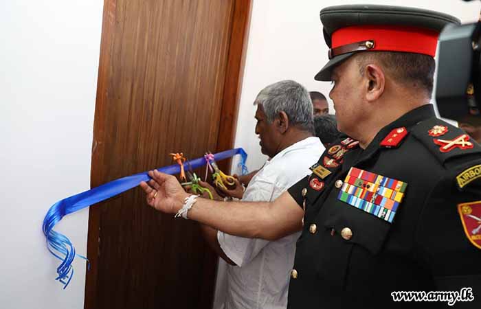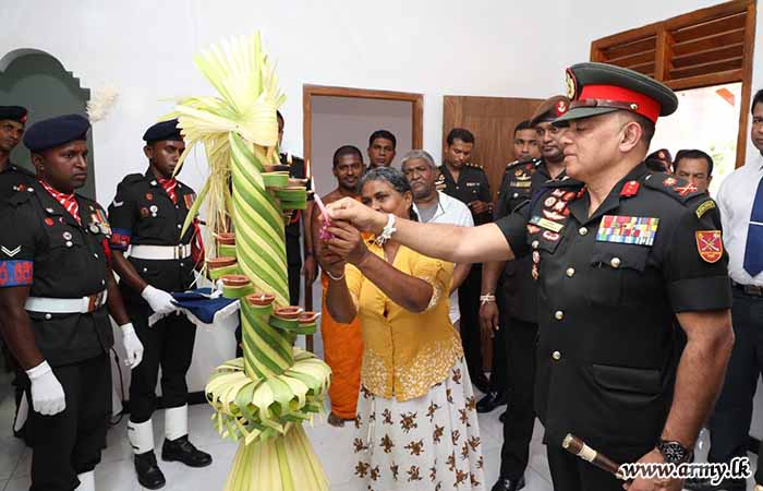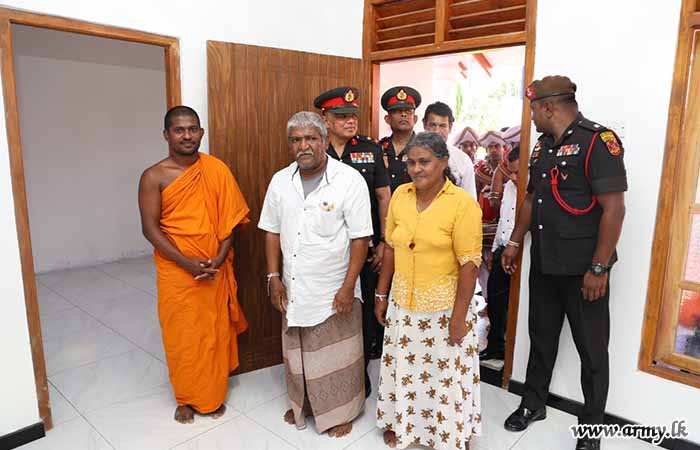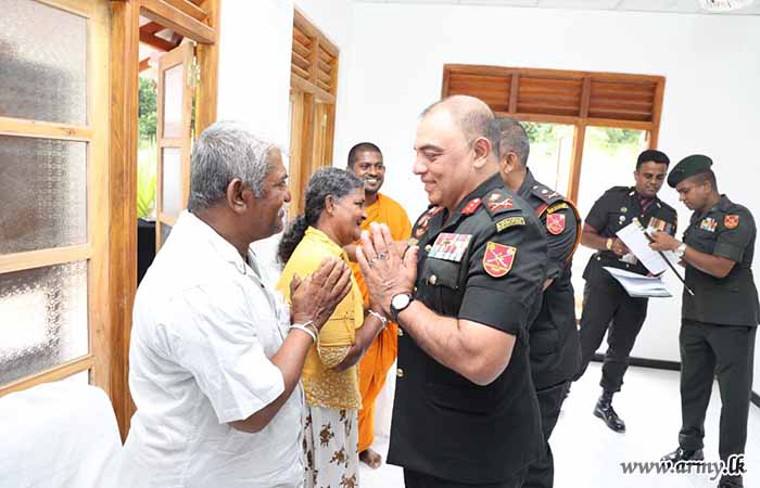 Commanding Officer of the 8 SLLI took the initiative to complete this house using technical skills and workforce assistance from troops of 8 SLLI for the construction work. During the warming ceremony, the house keys were symbolically handed over to the beneficiary by the Major General A.H.L.G Amarapala RWP RSP ndc psc, the Commander Security Forces (West).