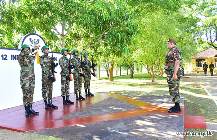 Upon his arrival at each location, he was warmly welcomed by Major General P.K.W.W.M.J.S.B.W. Pallekumbura RWP RSP ndu psc, the General Officer Commanding of the 12 Infantry Division, along with the Brigade Commanders and Commanding Officers of Battalions. He was then accorded Guard Turnouts by the troops at each location.