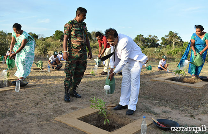 This phase, organized on the directions of Major General Kumudu Perera, Commander, Security Forces - Wanni who has been entrusted with the overall responsibility of the project saw over 8000 Kumbuk saplings and 500 other valuable plants were planted on that day with the participation of above stakeholders. They were planted inside conserved areas of Wilpattu National Park, Villaththaikulam and Veppal forest areas. In addition, those environmentalists provided 100 cement bags, 600 feet of PVC pipes, 10 water barrels and Rs. 50,000.00 in cash to be used for the project as planned by the Army.