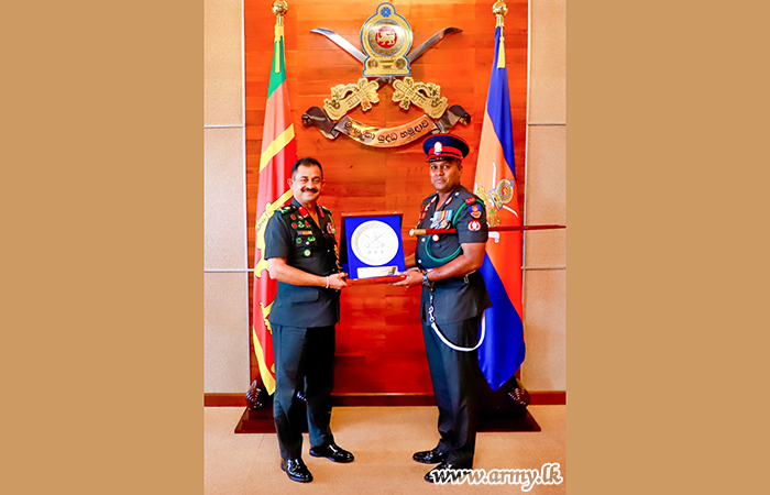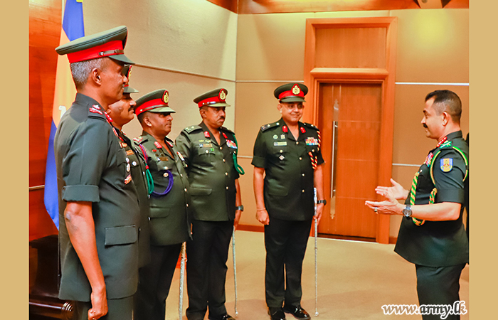 The retiring Regimental Sergeant Major (RSM) at the Army Headquarters, Warrant Officer-I R.G.M.S.S Jayaweera USP during a rare meeting with the Commander of the Army, Lieutenant General Vikum Liyanage...