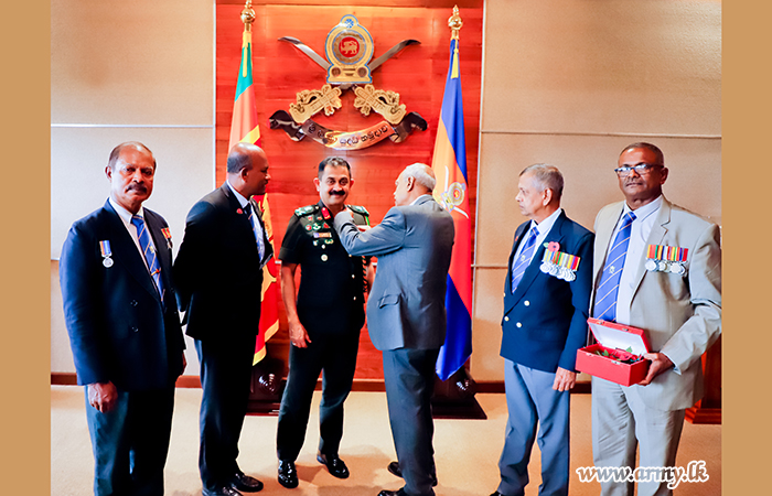 Ex-Servicemen Pin Poppy Flower on Army Chief