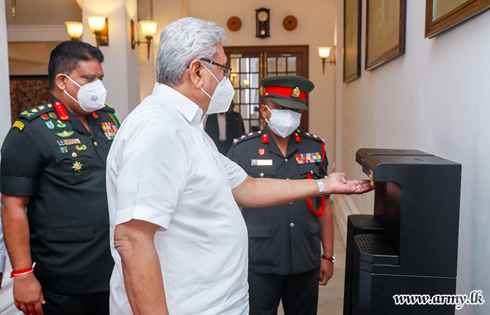 A state-of-the art automated hand sanitizer machine, innovated by the the Research Analysis, Projection and Development Branch of the Sri Lanka Army was introduced to HE the President Gotabaya Rajapaksa at the Presidential Secretariat on Tuesday 06). Representing the innovators, the Chief of Defence Staff and....