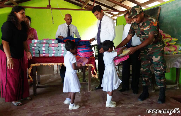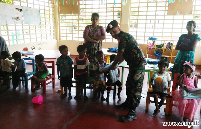 Troops of the 23 Gemunu Watch (23 GW) under the 552 Brigade of the Security Force Headquarters - Jaffna (SFHQ-J) voluntarily came forward to donate a stock of basic stationery items for 15 kids in the Dinesh Pre-School at Kachchaweli. Each kid received stationery items, worth of.....