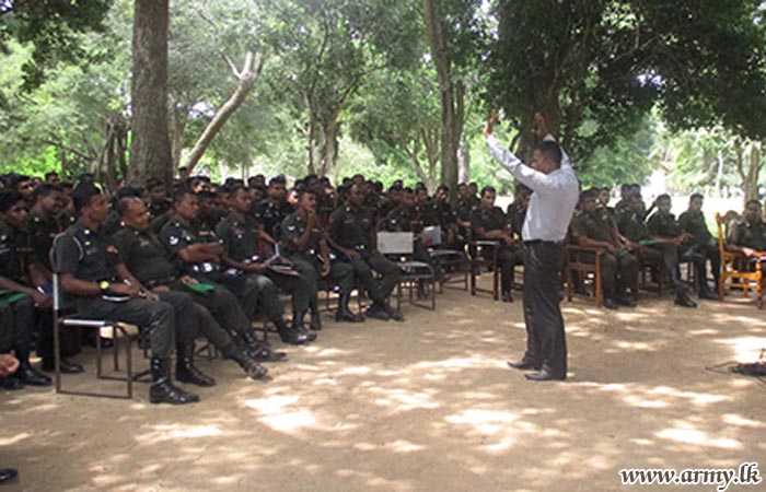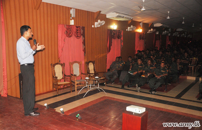 The importance of receiving a vocational training, prior to retirement was highlighted during a special awareness programme, organized by the Security Force Headquarters - Kilinochchi (SFHQ-KLN) on Tuesday (4) before a gathering of more than 400 Army personnel.