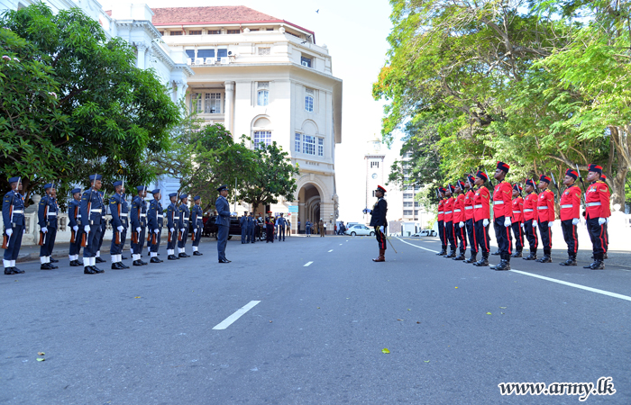 The change-over of the ceremonial guard at the President’s House and the Temple Trees took place this morning (1) during a brief ceremony in front of the President’s House at Colombo-Fort.