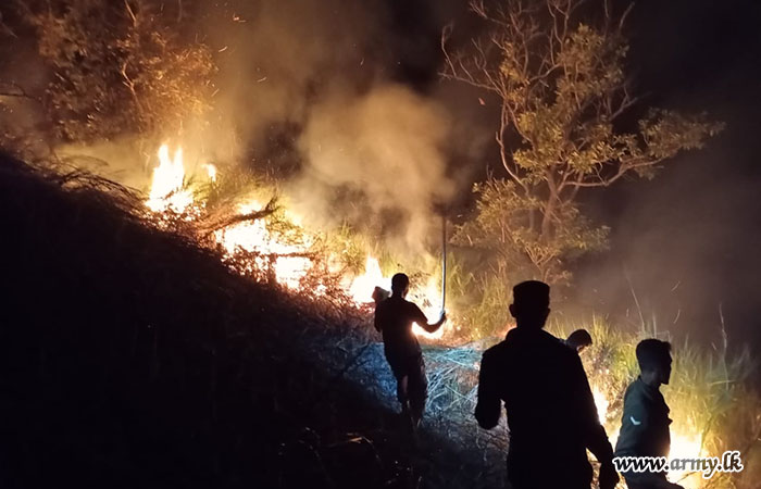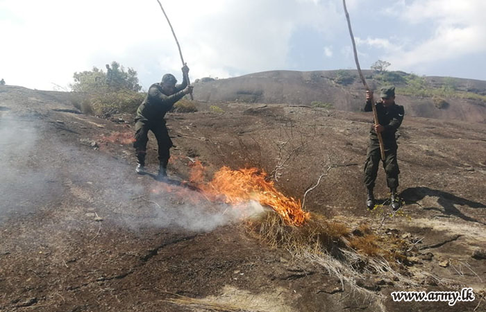 A group of two Officers and twenty Other Ranks of the Sri Lanka Electrical and Mechanical Engineers Base Workshop, Udawalawa, promptly acted to douse a fire that broke out in the Waulpane Forest Reserve...
