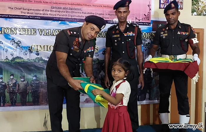 11 Vijayabahu Infantry Regiment (11 VIR) troops of the Security Force HQ - Jaffna coordinated and organized a donation of school accessories to 28 kids at Kalavani pre-school, Velvettiturai...