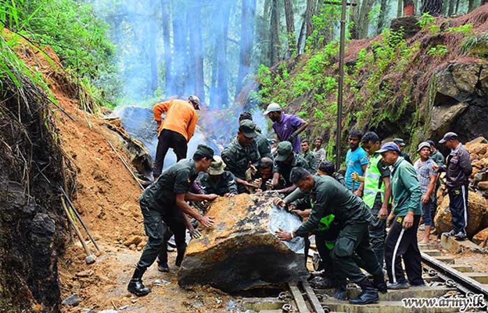 Once again troops of the Security Force Headquarters - Central (SFHQ-C) cleared the earth mounds and rocks that had fallen near Diyatalawa railway station on Friday (01 Dec) due to continuous rainfalls.