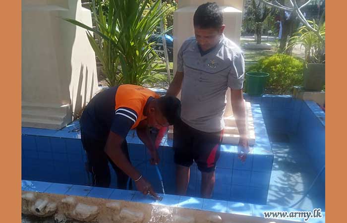 Troops of the 10 Sri Lanka National Guard (10 SLNG) of the 144 Infantry Brigade under the 14 Infantry Division lent their manpower to clean and colour wash the Jayawadanagama 'Maithree Dharmayathanaya' temple in Battaramulla...