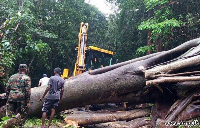 Troops of the 4 Sri Lanka Light Infantry (SLLI) Regiment of the 111 Infantry Brigade under the 11 Infantry Division of the Security Force HQ-Central on 18 November immediately cleared a huge fallen tree that had blocked the traffic along...