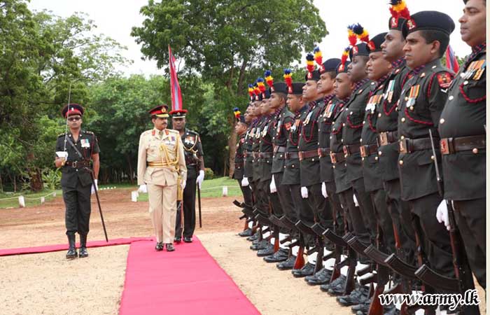 Troops of Forward Maintenance Area - North (FMA - North) upon arrival of their newly-promoted FMA- North Commander, Major General E.M.M Fernando Hdmc Lsc AATO after receipt of new insignia from the Army Chief...