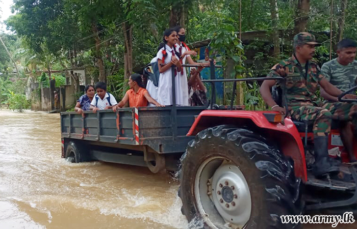 With the intention of providing relief services to the flood victims of affected areas in Matara, the Army troops of the 61 Infantry Division engaged in another humanitarian relief assistance by providing transport facilities on Wednesday (24 October).
