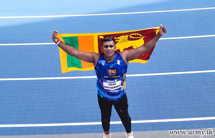 Warrant Officer II, K.A Samitha Dulan of Sri Lanka Corps of Military Police (SLCMP) won the Silver Medal in the Para Javelin Throw F-44 (Distance - 64.09m) event in the 4th Asian Para Games 2023 held in Hangzhou, China this morning (25 Oct).