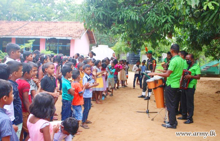 16 Gajaba Regiment (GR) troops of the 143 Infantry Brigade troops of 14 Infantry Division under the Security Force HQ - West (SFHQ-West) entertained 307 school students at Thevanuvara Mailankulam...