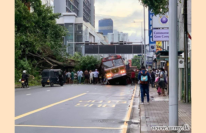 A group of Army personnel along with Navy and Air Force men, Disaster Management Centre workers and Colombo Municipal Council Workers were among the firsts to reach Colpetty Liberty roundabout area this morning...