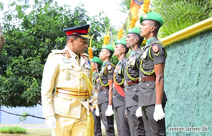 Troops of the Army War College (AWC) at Buttala honoured their newly-promoted AWC Commandant, Major General U.K.D.D.P Udugama RWP RSP USP ndc psc in a customary ceremony on Saturday (16 Sep) at the AWC premises upon arrival after recent promotion.